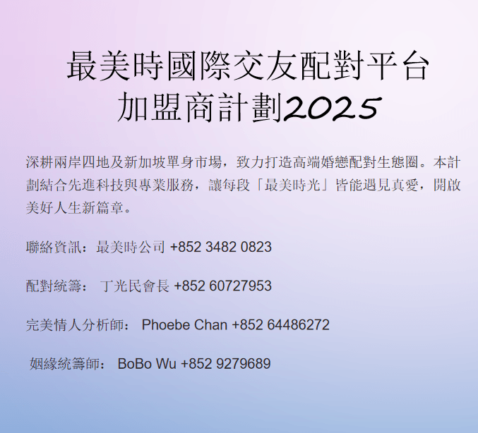 我們爲會員提供個性化的婚戀配對服務,確保每一次相遇都充滿可能性。